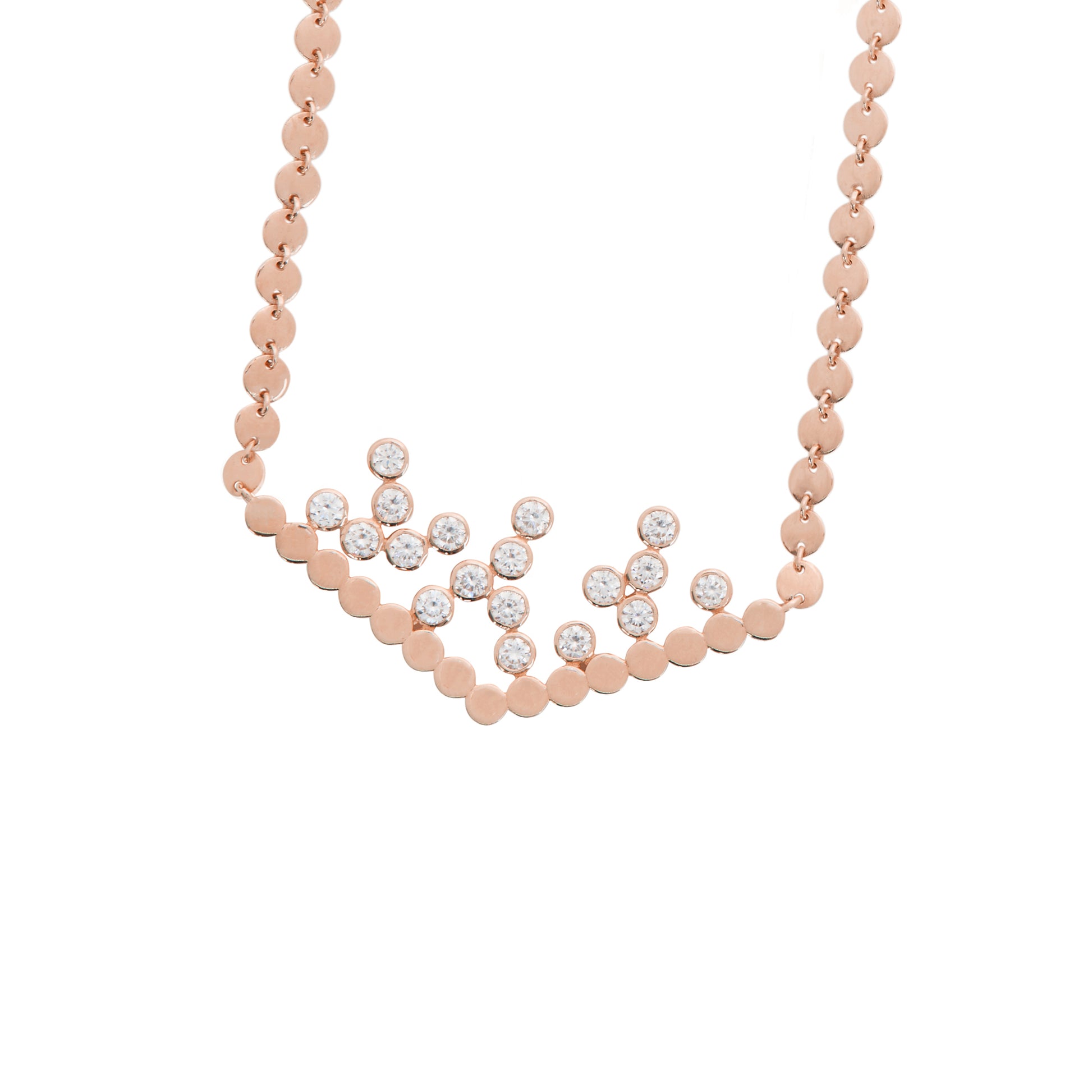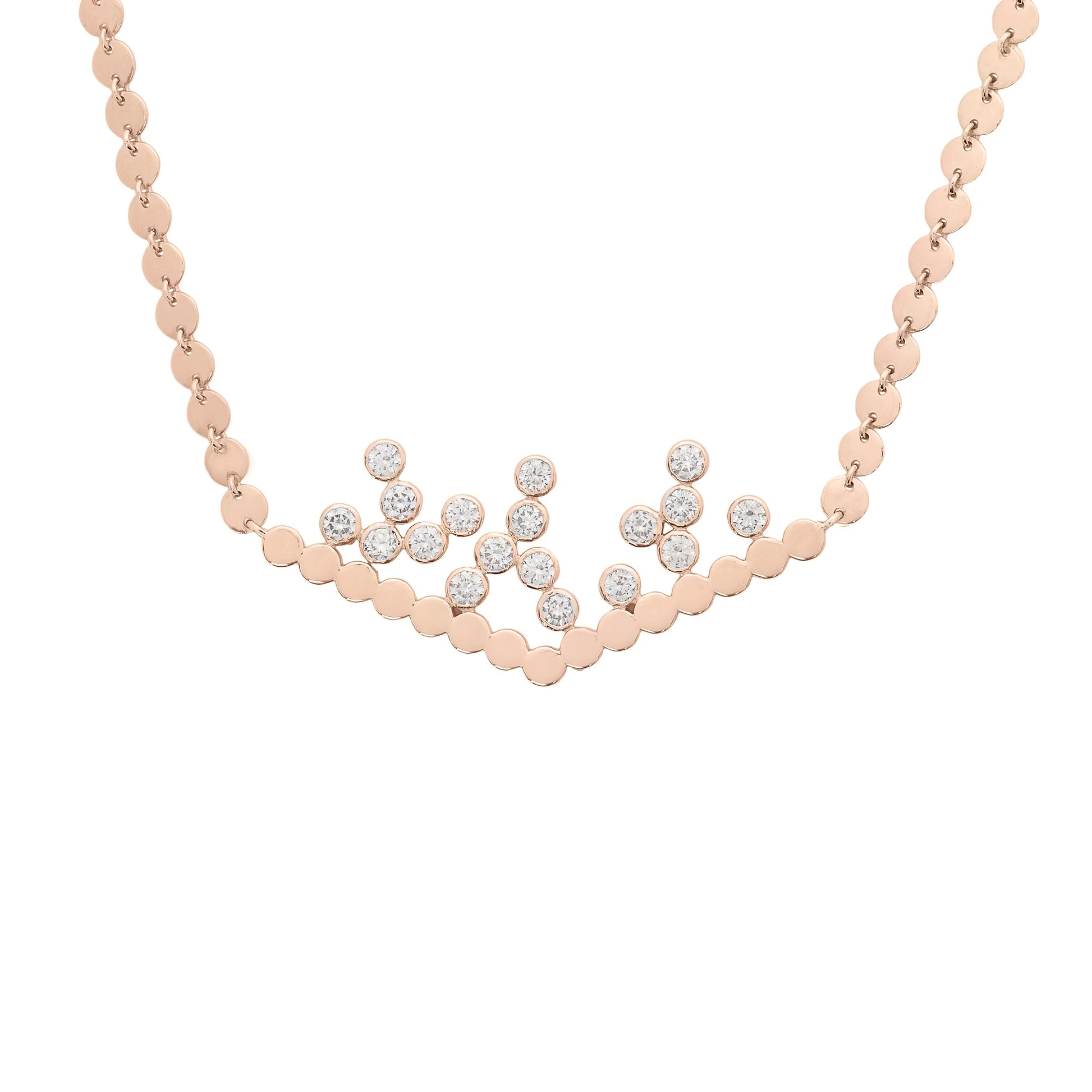 Eighteen hand-selected diamonds dance around your neckline, streaming from a ribbon of radiant 18k gold.