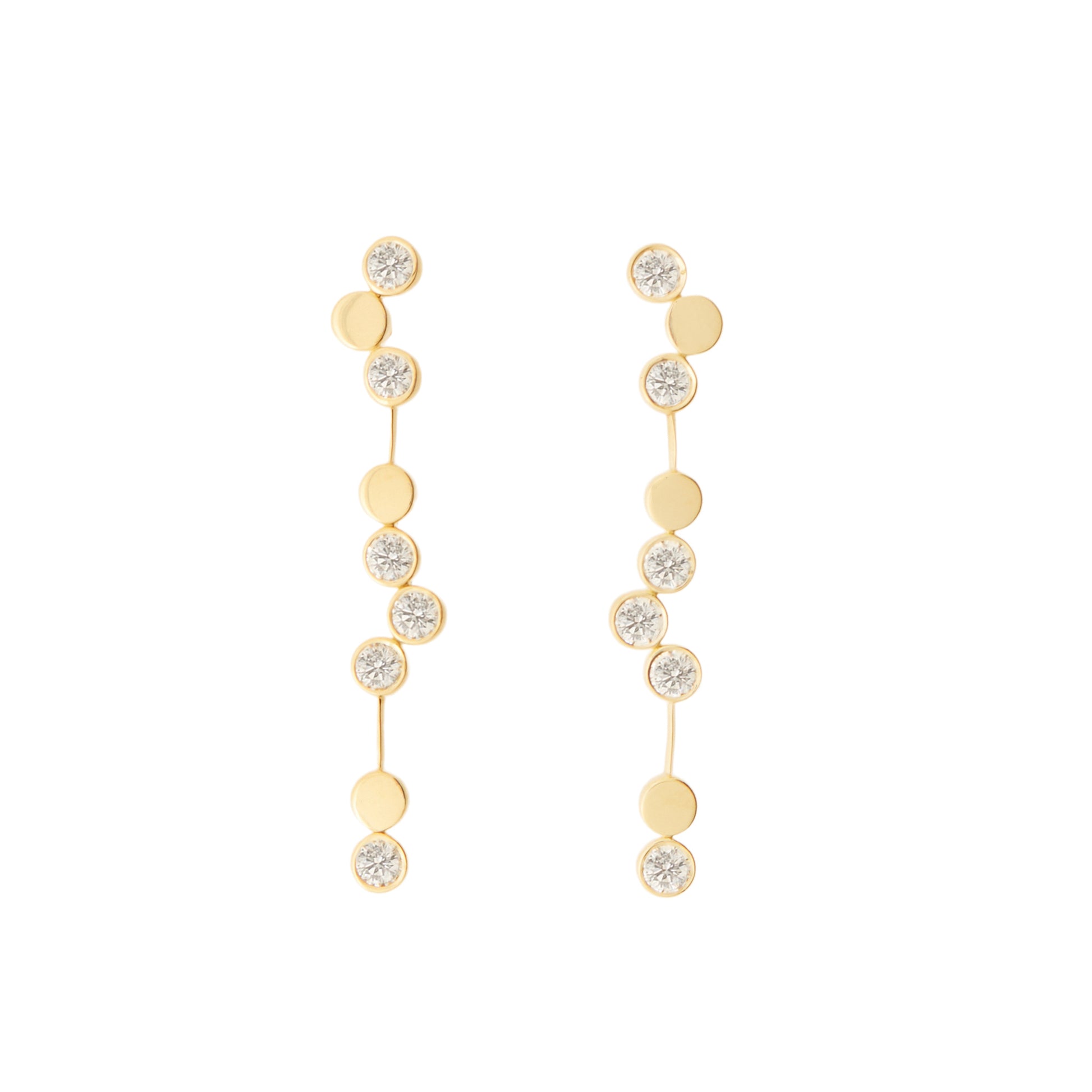 Reminiscent of those long lines of bubbles in the glass, these earrings mesmerize with delicate diamonds and 18k gold. Take a sip.