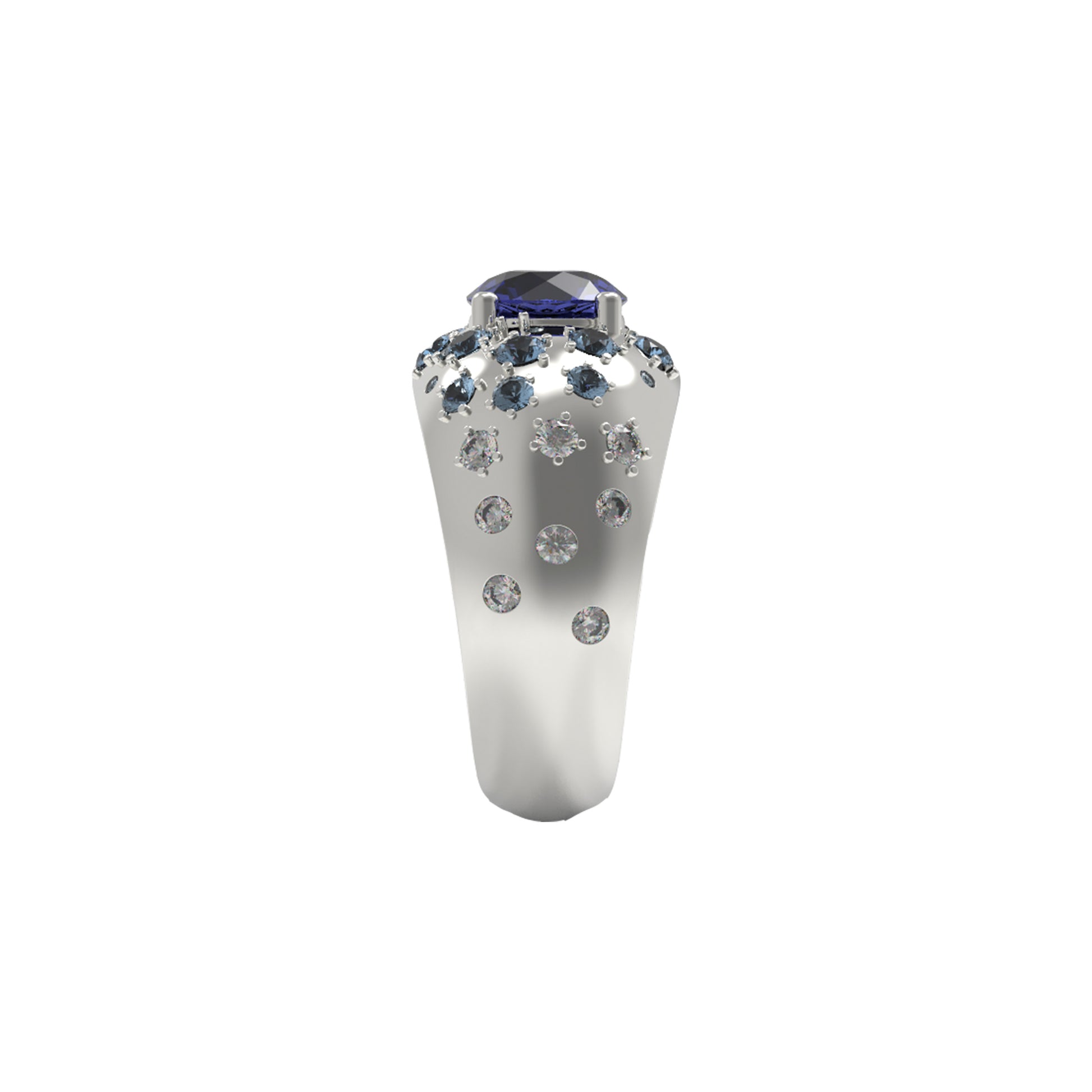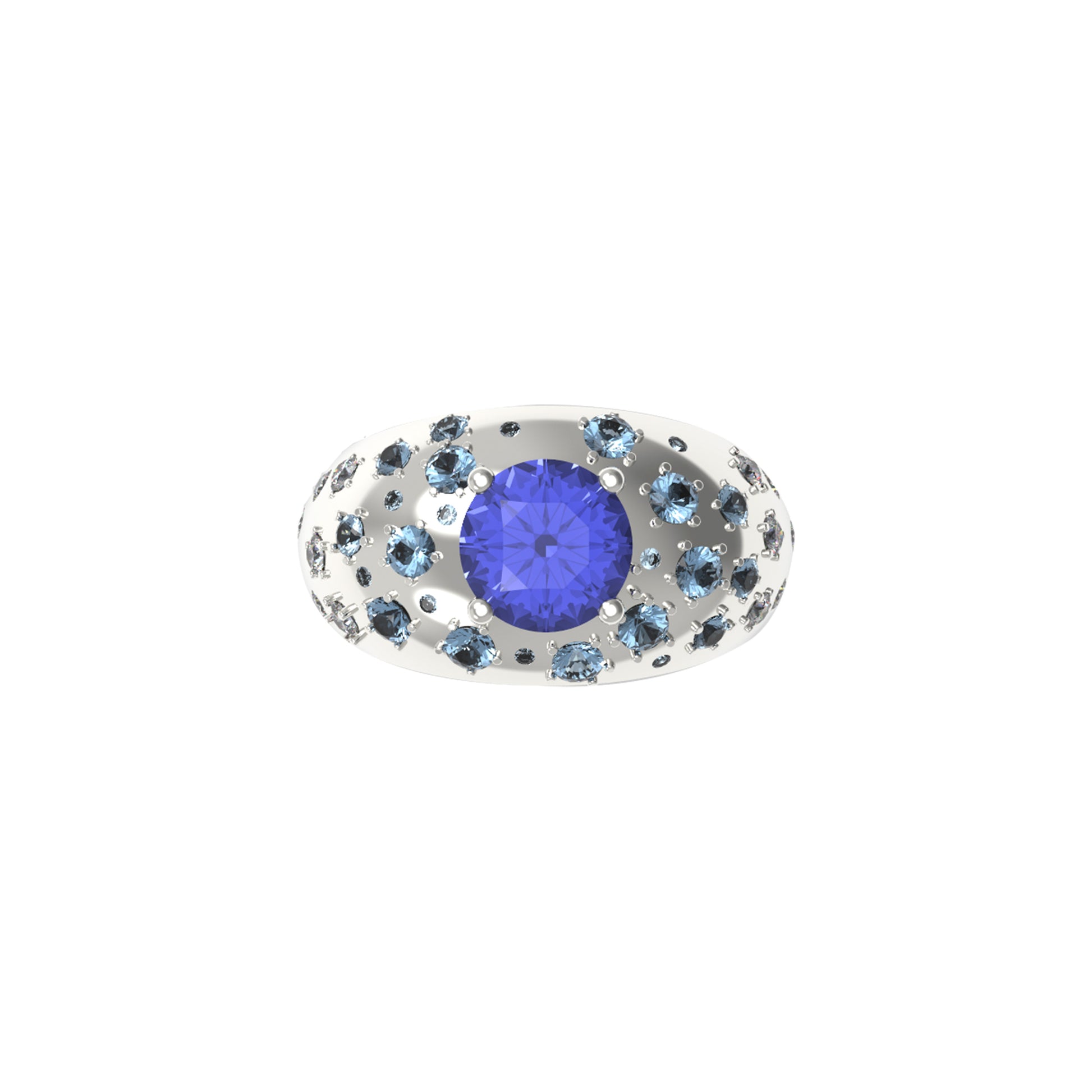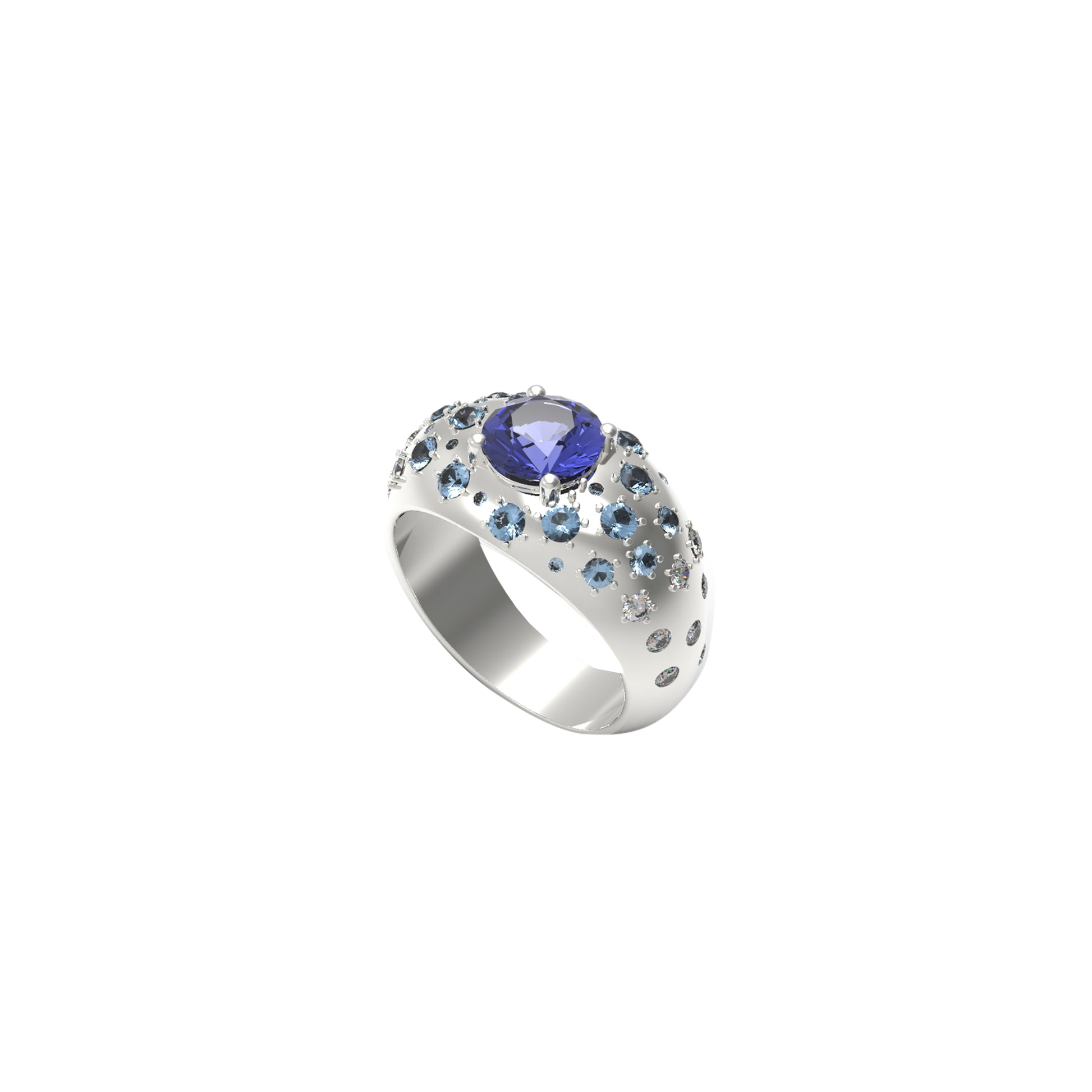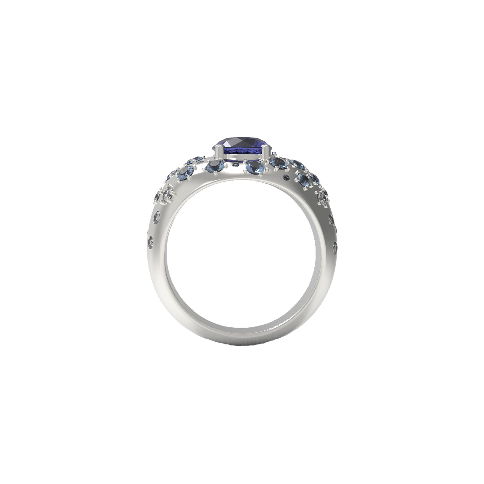 The ring is fully customizable. You can choose the center stone gemstone and the sidestones. Simply email info@erinflynnjewelry.com to begin.