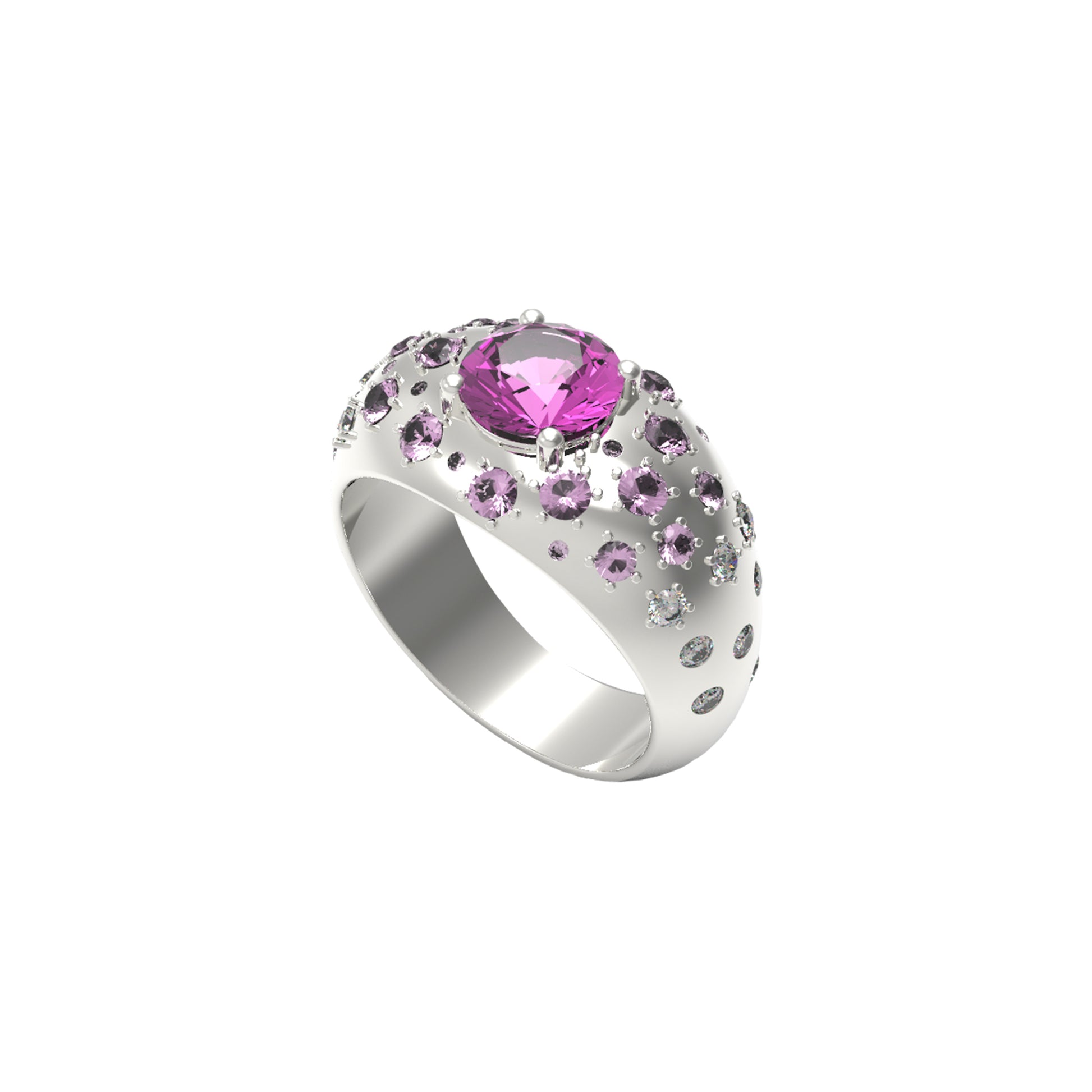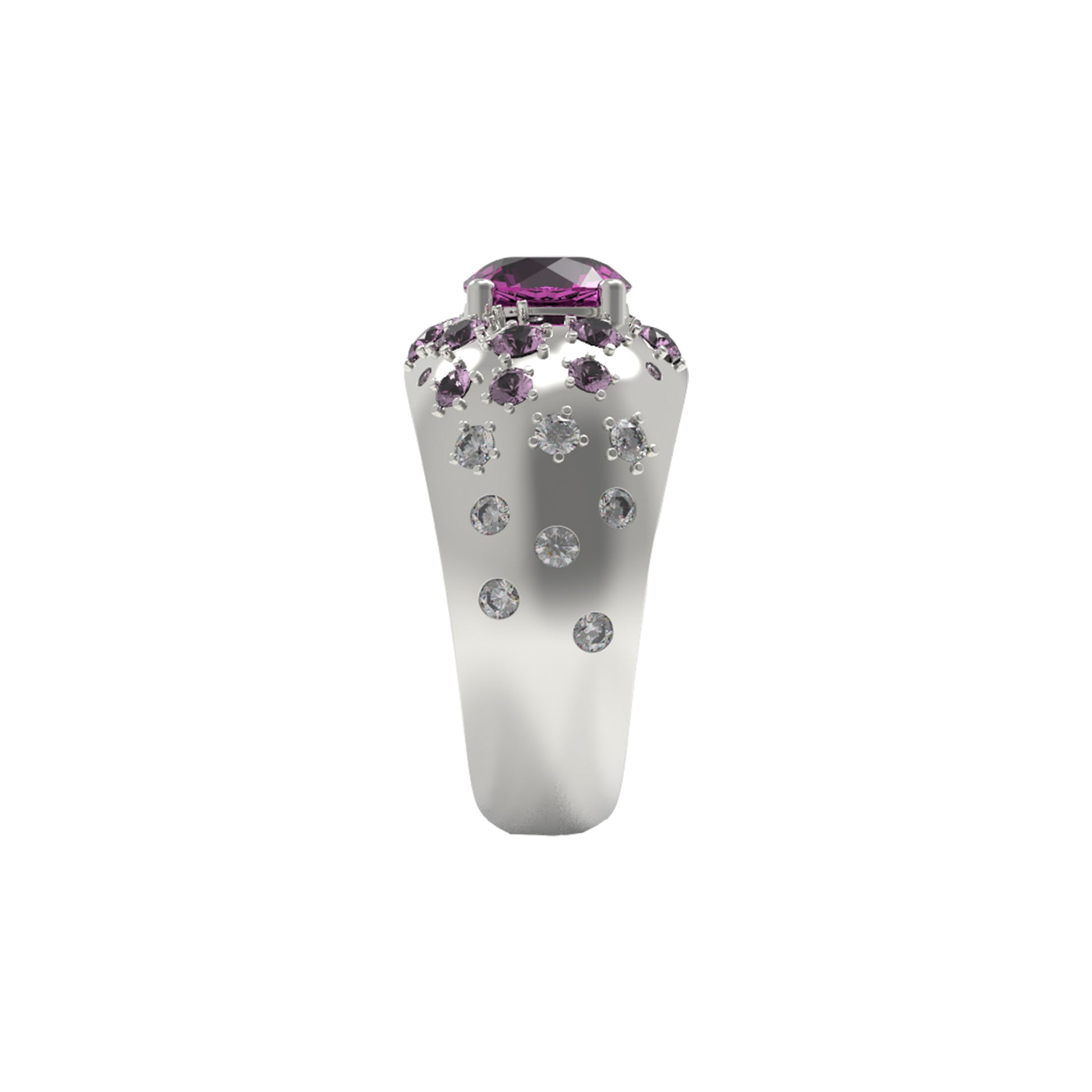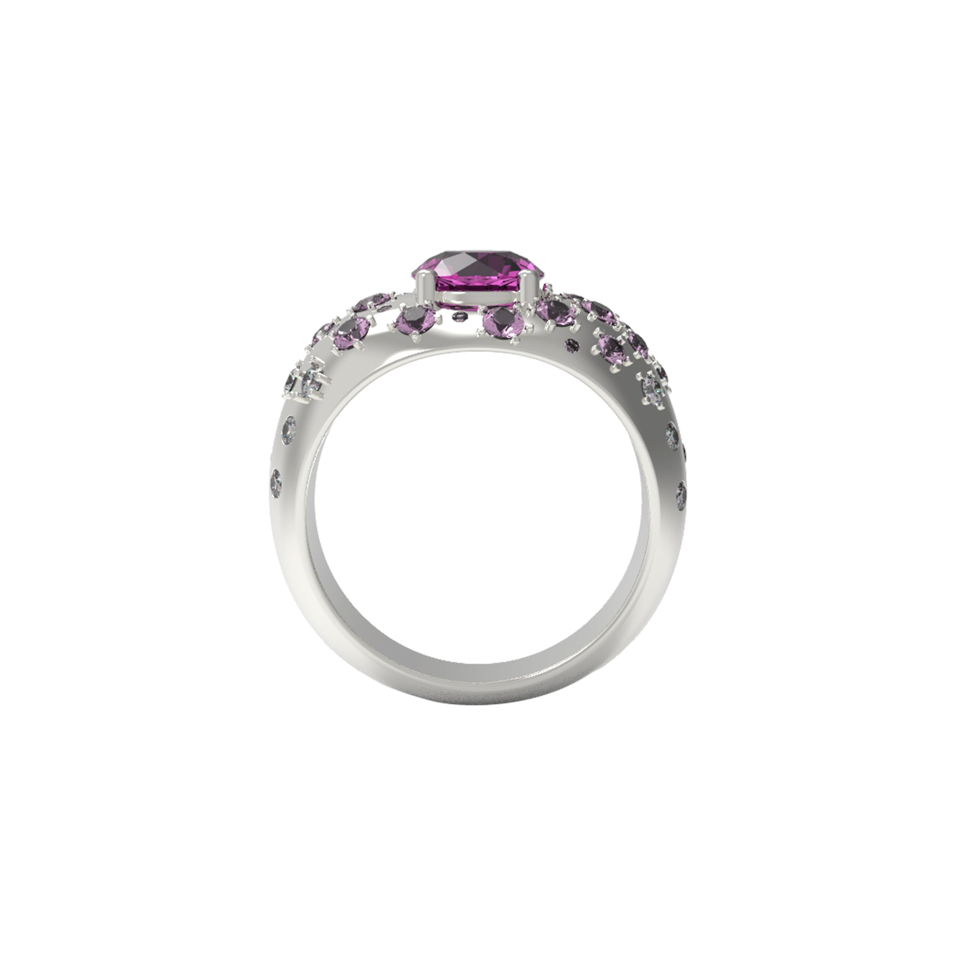 The ring is fully customizable. You can choose the center stone gemstone and the sidestones. Simply email info@erinflynnjewelry.com to begin.